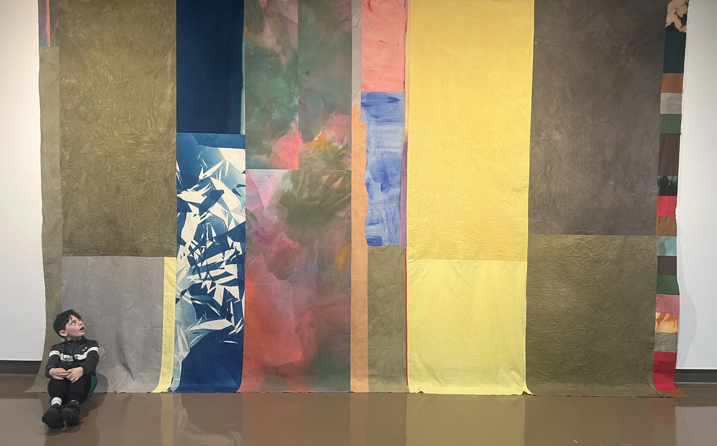 Kylie Banyard, Soft wall 1, 2024, acrylic on canvas, 250 cm x 300cm, featuring Kylie’s son. Image courtesy of the artist.