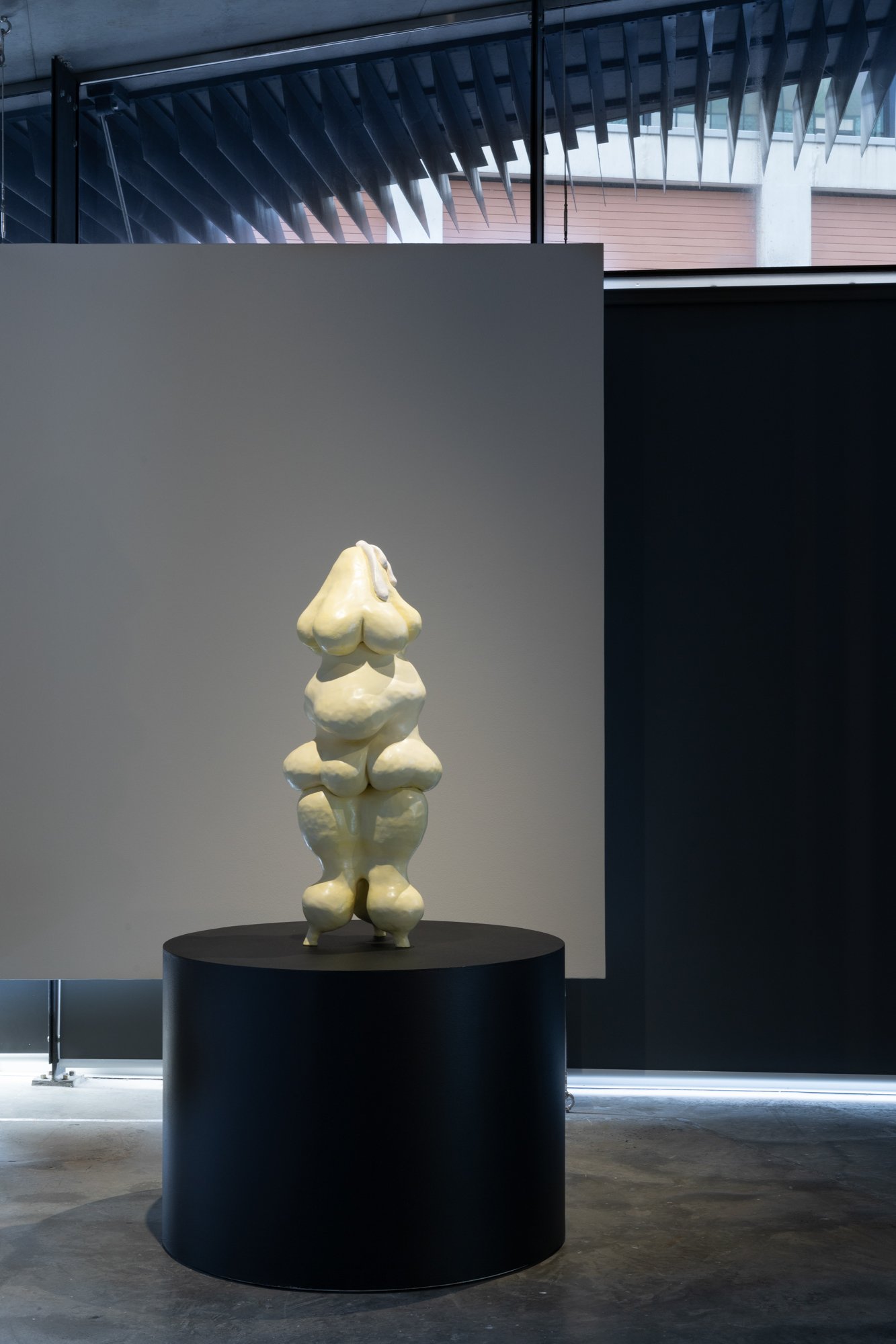 Cybele Cox’s sculptures offer an imagining of new societal systems founded on symbolism and folklore. She merges abstracted and literal representations of biological and celestial beings alongside utilitarian objects in large-scale, totem-like pillars. Cox’s sculptures operate as time-travellers, collecting ideas and forms across multiple artistic and philosophical periods, resisting fixed or predetermined identities imposed upon individuals in contemporary society.